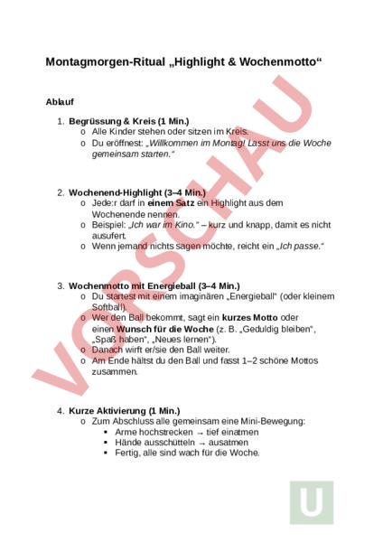 Arbeitsblatt: Ritual Montagmorgen