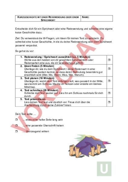 Anleitung um eine kurze Geschichte zu einem Sprichwort / einer Redensart zu schreiben