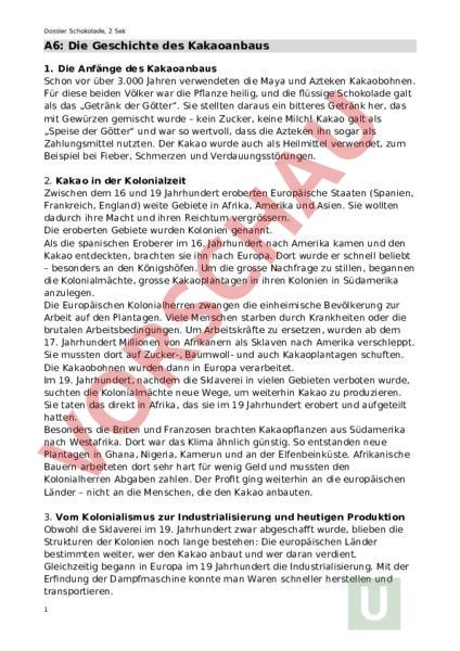 Arbeitsblatt: Geschichte des Kakaoanbaus