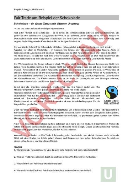 Arbeitsblatt: Fair Trade am Beispiel von Schokolade