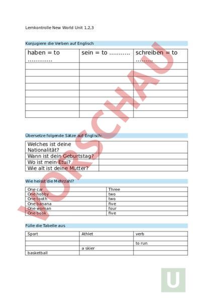 Arbeitsblatt: New World 1 Unit 1-3