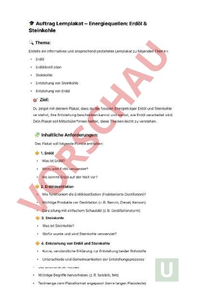 Arbeitsblatt: Lernplakat Erdöl Steinkohle