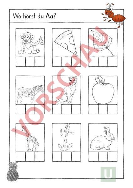 Arbeitsblatt zur Lauterkennung zum Buchstaben A