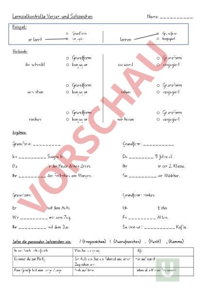 Arbeitsblatt: Lernzielkontrolle Verben und Satzzeichen