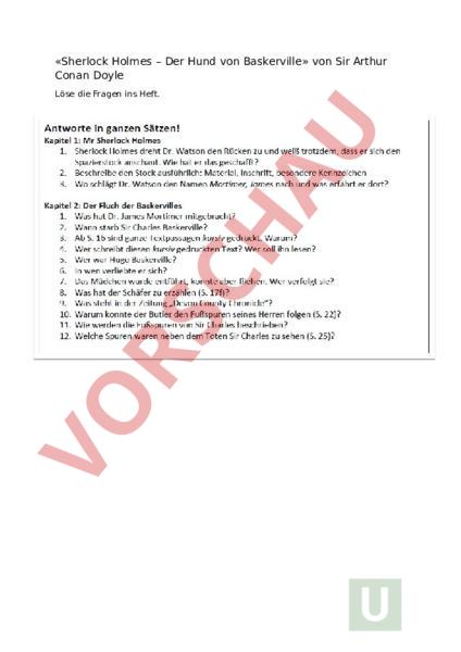«Sherlock Holmes – Der Hund von Baskerville» von Sir Arthur Conan Doyle Löse die Fragen ins Heft.