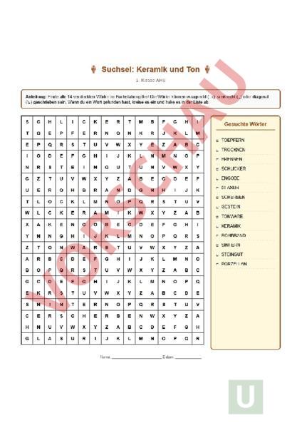 Arbeitsblatt: Ton/Keramik Wortfinderätsel