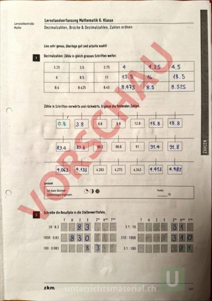 Arbeitsblatt: Dezimalzahlen, Brüche