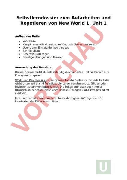 Dossier zur Repetition, Aufarbeitung oder Vertiefung von New World 1, Unit 1