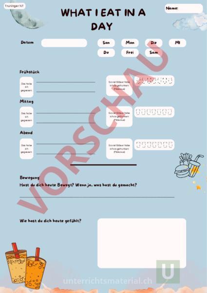 Truninger NT Name: WHAT EAT IN DAY Datum Son Mon Die Do Frei Sam Frühstück Das habe ich gegessen: So viel Gläser habe ich ca getrunken: (Male aus) Mittag Das habe ich gegessen: So viel Gläser habe ich ca getrunken: (Male aus) Abend Das habe ich gegessen: So viel Gläser habe ich ca getrunken: (Male aus) Bewegung: Hast du dich heute Bewegt? Wenn ja, was hast du gemacht? Wie hast du dich heute gefühlt? MI
