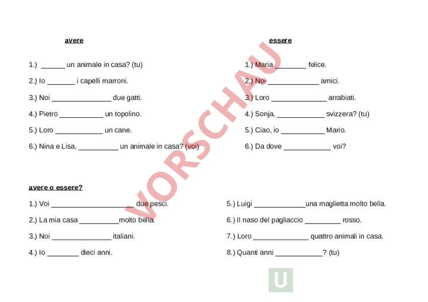 Arbeitsblatt: avere und essere