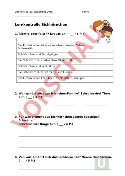 Arbeitsblatt: Lernkontrolle Eichhörnchen