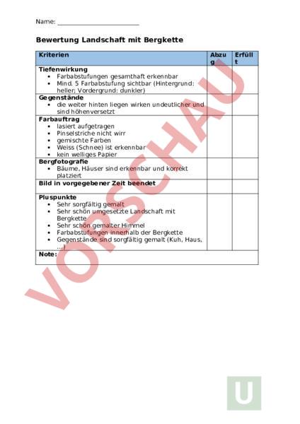 Arbeitsblatt: Bewertung Landschaft mit Bergkette