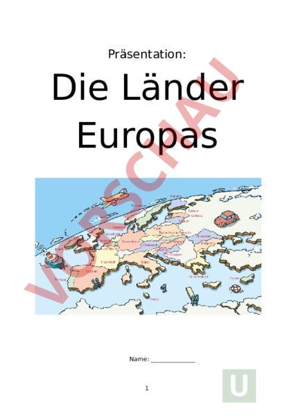 Arbeitsblatt: Länder Europas Vorträge nach LP21