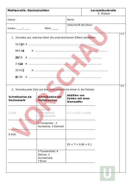 Themenbuch; einfacher Test, nur Thema Dezimalzahlen