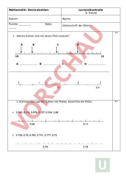 Themenbuch, 6. Klasse, Lernzielkontrolle nur Thema Dezimalzahlen