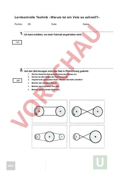 Arbeitsblatt: NMG-Lernkontrolle Warum ist ein Velo schnell