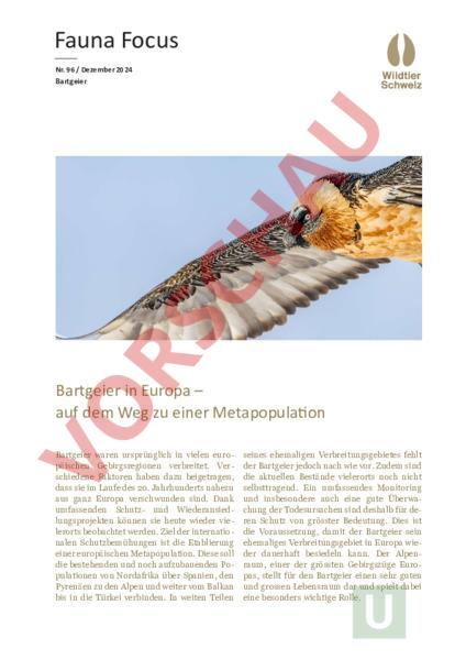 Das Fachheft Fauna Focus bietet fundierte Inhalte zu Wildtier-Themen. Unsere Autor:innen vermitteln anschaulich, wie sich Wildtiere und Menschen den Lebensraum teilen. Sie beleuchten Hintergründe und Zusammenhänge und diskutieren kontroverse Fragen. Fauna Focus verbindet Wissenschaft mit Praxis und fördert den Informationsaustausch.