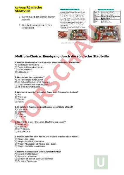 Multiple-Choice-Arbeitsblatt zum Thema römische Stadtvilla (Domus).