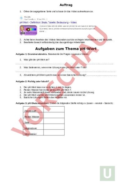 Arbeitsblatt: Aufgaben zum Thema pH-Wert