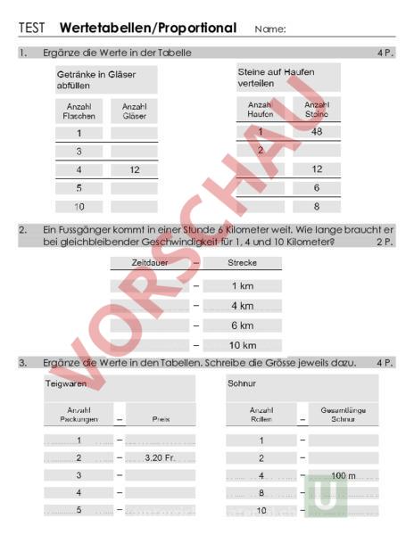 Arbeitsblatt: Test Wertetabellen/Proportionalität
