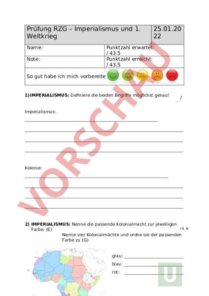 Arbeitsblatt: Test Imperialismus und 1. Weltkrieg