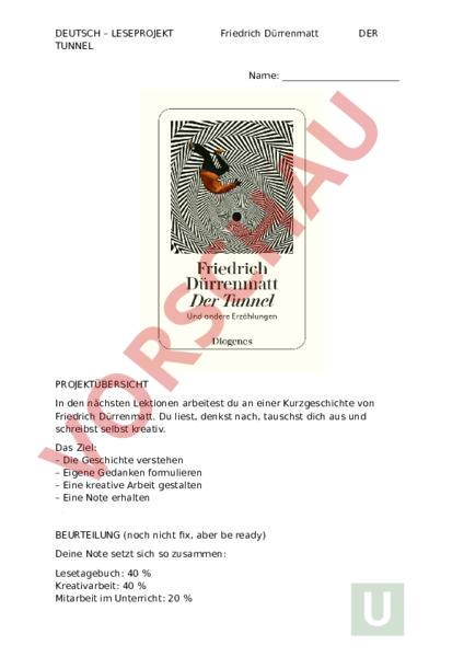 Dieses Dossier kann begleitend zur Kurzgeschichte "Der Tunnel" von Friedrich Dürrenmatt genutzt werden. (Die Geschichte findet man online zum Download). Es beinhaltet Gruppen und Einzelaufträge und dauert so ca. 6 Lektionen, also perfekt, wenn mal etwas Zeit vor den Ferien übrig bleibt.