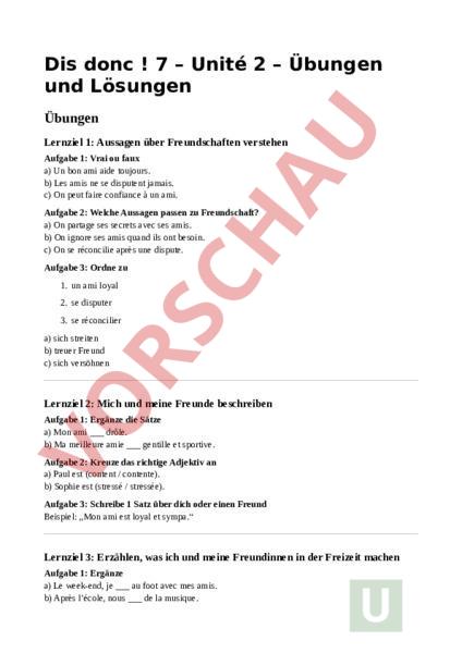 Arbeitsblatt: Übungen zu Dis Donc 7 Unite 2 Lernzielen