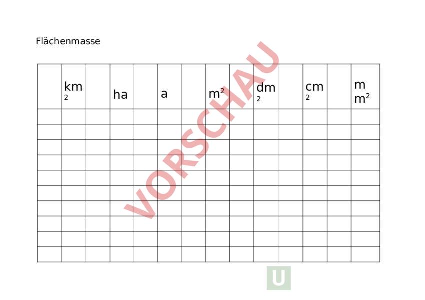 Arbeitsblatt: Stellentafel_Flächen-Raummasse