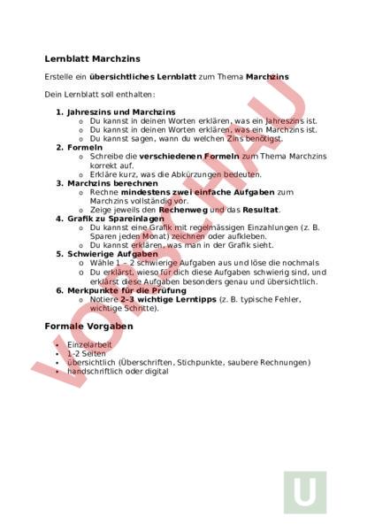 Arbeitsblatt: Lernblatt Marchzins