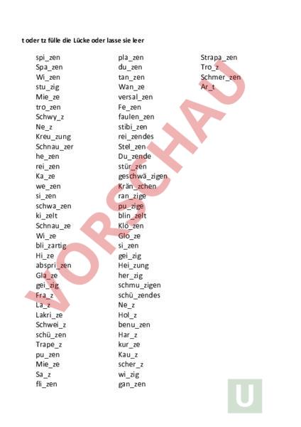 t oder tz fülle die Lücken korrekt aus