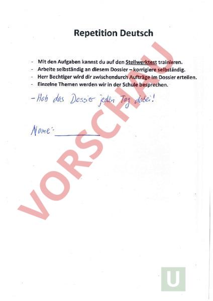 Arbeitsblatt: Deutsch-Dossier zur Stellwerkvorbereitung