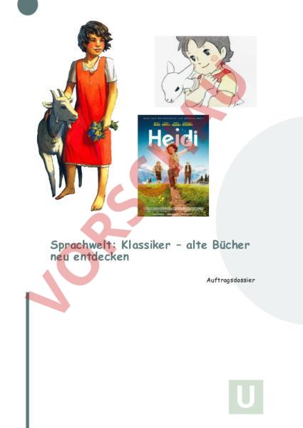 Sprachwelt: Klassiker – alte Bücher neu entdecken Auftragsdossier TEIL Was du machst: Du sammelst Wissen und Material zur Figur Heidi. Du haltest Wichtiges im Arbeitsheft Klassiker – Alte Bücher neu entdecken fest. Du liest den Brief von Klara an Heidi im Arbeitsheft Klassiker – Alte Bücher neu entdecken und löst die Aufgaben dazu. HEIDI – EIN WELTBEKANNTES MÄDCHEN Aufträge 1. 2. 3. 4. Was weisst du über Heidi? Woher kennst du Heidi? Was wissen deine Eltern und Grosseltern über die Figur Heidi? Hast du zu Hause etwas von oder über Heidi? Bringe es mit. EIN BRIEF VON KLARA Auftrag: Lies den Brief von Klara an Hedi auf der Seite 8 im Arbeitsheft und löse anschliessend die Aufgaben auf der Seite 9. 1 TEIL Was du machst: Du liest das erste Kapitel des Romans Heidis Lehr- und Wanderjahre und tauschst dich mit jemanden darüber aus. Du erarbeitest eine Zusammenfassung der Geschichte von Heidi, indem du vorgegebene Textausschnitte ordnest. Du erfährst im Arbeitsheft Klassiker – Alte Bücher neu entdecken Wichtiges über die Autorin Johanna Spyri. HEIDI – WIE ALLES BEGANN Aufträge 1. Lies das erste Kapitel Zum Alm-Öhi hinauf für dich (Zusatzblatt) 2. Tausch dich über das Gelesen aus und lösen die Aufgaben auf der Seite 10-11 im Arbeitsheft. HEIDI DIE GESCHICHTE Aufträge 1. Schneide die einzelne Text von Heidis Geschichte aus (Zusatzblatt) 2. Schau dir folgende Ausschnitte des Heidi Films an: • 350 – 540 • Ein Tag mit Peter: 1125 – 2010 • Besuch bei der Grossmutter: 24 – 2655 • Frankfurt: 2750 – 4025 • Heimweh: 1h 0540 – 1h 1709 • Besuch aus Frankfurt: 1h 2510 – 1h 3139 • Klara kann gehen: 1h 3455 – 1h 3750 3. Ordne die Texte der richtigen Reihenfolge. 4. Korrigieren die Reihenfolge und klebe sie ins Arbeitsheft ein. 5. Lies die Geschichte JOHANNA SPYRI Auftrag: Arbeite an den Seiten 16-19 im Arbeitsheft (Zusatzblatt mit QR-Codes). 2 TEIL Was du machst: Du schaust dir den Beitrag von Patti Basler. Du vergleichst die Originalgeschichte von Johanna Spyri mit der Version von Patti Basler Du denkst über die Gedanken und Gefühle von Heidi nach. HEIDI HEUTE Aufträge 1. Schau dir das Video V1.2 Heidi heute von Patti Basler und Philippe Kuhn an 2. Mach dir über folgende Fragen Gedanken und schreibe dir Stichworte auf ein Notizblatt auf: • Was fällt dir auf? • Was hat dich überrascht? Warum? • Was ist gleich und was ist anders? Warum? • Was gefällt dir? Warum? • Was gefällt dir nicht? Warum? HEIDI HEUTE – DER VERGLEICH Auftrag: Bearbeite die Seiten 20/21 im Arbeitsheft. HEIDI HEUTE – INNERER MONOLOG Auftrag: Bereite einen inneren Monolog von Heidi zu einer wichtigen Szene vor. Überlege dir, was Heidi denkt und fühlt. Sprich so, als würde Heidi leise mit sich selbst reden. Du kannst den inneren Monolog • • Vortragen oder ihn aufnehmen und als Audiodatei abgeben. Achte darauf, dass man gut hört: 3 • was in Heidi vorgeht • wie sie sich fühlt • warum diese Szene für sie wichtig ist. TEIL Was du machst: Du suchst im Internet gezielt nach Heidi und haltest deine Ergebnisse im Arbeitsheft Klassiker – Alte Bücher neu entdecken fest. HEIDI – EIN SCHWEIZER MÄDCHEN EROBERT DIE WELT Aufträge: 1. Recherchiere im Internet mehr zu Heidi und halte dies im Arbeitsheft auf Seite 22 fest. 2. Beantworte die Fragen auf der Seite 23 im Arbeitsheft. HEIDI REFLEXION Auftrag: Bearbeite die Reflexionsfragen auf der Seite 24 ausgiebig. 4 TEIL Was du machst: Du entdeckst alte Klassiker. DAS KENNE ICH! Aufträge: 1. Markiere auf der Seite 26 alle Buchtitel, die du kennst. 2. Mache dir zu folgenden Fragen Gedanken: • Welche Themen kommen oft vor? Warum? • Welche Autorin oder welcher Autor ist bekannt? • Wie wird ein Buch bekannt? • Wie wird ein Buch zu einem Klassiker? 3. Beantworte die Fragen auf der Seite 27 im Arbeitsheft. UMFRAGE Auftrag: Mache eine Umfrage in deinem nahen Umfeld zu Hause. Halte die Ergebnisse auf der Seite 26 im Arbeitsbuch fest. 5 TEIL Was du machst: Du schmökerst in verschiedenen Bibliotheken nach Klassikern und entscheidest dich für einen Klassiker, den du lesen möchten. Du präsentierst diesen Klassiker in einer gewählten Form. AUF DER SUCHE NACH KLASSIKERN Aufträge: 1. Gehe in die Bibliothek und schau dir einige Klassiker an. 2. Orientiere dich an Kriterien wie, Thematik, Buchtitelseite und Klappentext, Seitenanzahl, Schriftgrösse und Schriftbild. DIE CHANCE DER WAHL Auftrag: 1. Entscheide dich für einen Klassiker und begründe deine Wahl schriftlich auf der Seite 28 im Arbeitsheft. 2. Wähle eine Präsentationsform aus und begründe auf der Seite 29 im Arbeitsheft. 6 TEIL Was du machst: Du liest dein ausgewähltes Buch und haltest deine Zusammenfassung im Arbeitsheft Klassiker – Alte Bücher neu entdecken fest. MEINEN KLASSIKER LESEN Auftrag: Lies dein gewähltes Buch. • • Nimm ein gewähltes Kapitel auf und gib es der Lehrperson. Lies einige Seiten (nach Absprache) einer Lehrperson vor. REFLEXION Auftrag: Halte auf der Seite 30/31 dein Resümee fest. 7 TEIL Was du machst: Du erarbeitest und gestaltest eine Buchpräsentation. BUCHPRÄSENTATION ERARBEITEN Auftrag: Bereite einen Vortrag vor und gestalte dazu ein Plakat, eine Lesekiste oder eine Leserolle. PRÄSENTATION Auftrag: Präsentation • • • • • • • 8 Titel, Name des Autors und Art des Buches Stelle die Hauptfiguren vor: Aussehen, Kleidung, Verhalten Erzähle die wichtigsten Handlungen Sag etwas zu den verschiedenen Versionen Lies eine kurze Textstelle vor Gib deine Meinung zur Geschichte ab Insgesamt ca. 10 Minuten