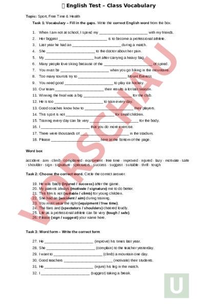Arbeitsblatt: English Test – Class Vocabulary