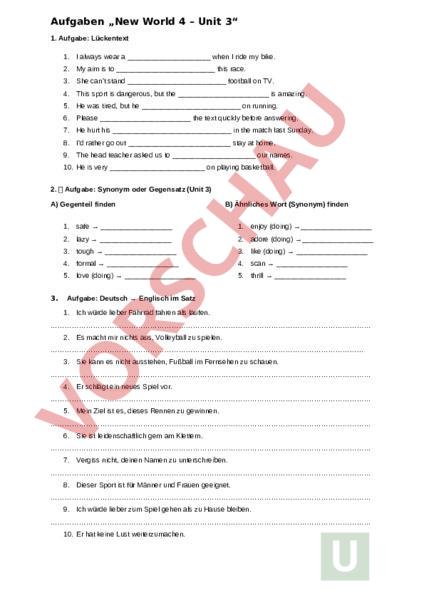 Arbeitsblatt: Aufgaben „New World 4 – Unit 3“