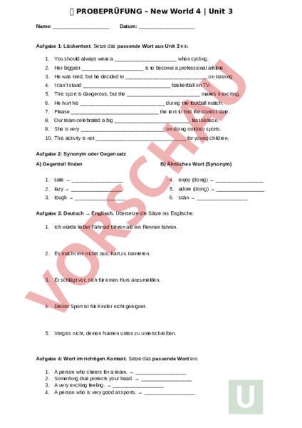 Arbeitsblatt: PROBEPRÜFUNG – New World 4 Unit 3