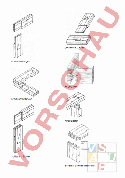 gestemmter Zapfen Ecküberblattungen Fingerzinken Kreuzüberblattungen Fingerzapfen Schlitz und Zapfen doppelter Schwalbenschwanz