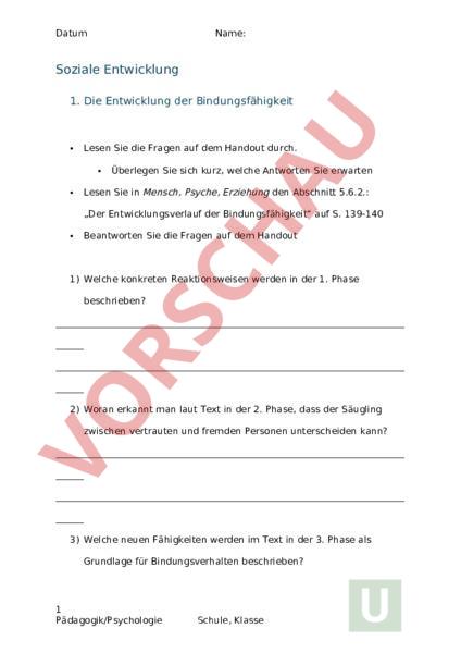 Entwicklung Bindungsfähigkeit in Anlehnung an Mensch Psyche Erziehung