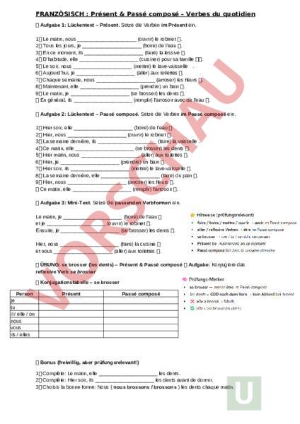 Arbeitsblatt: FRANZÖSISCH Présent & Passé composé – Verbes du quotidien