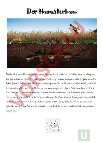Arbeitsblatt: Infotext Hamsterbau