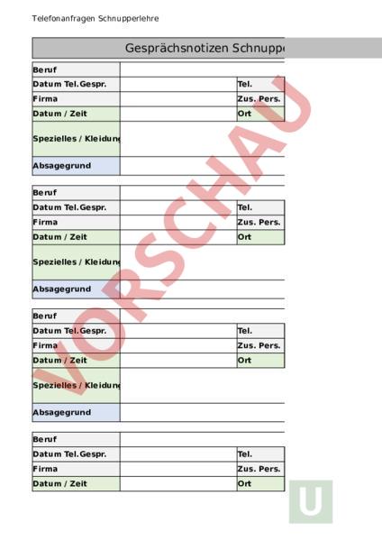 Telefonanfragen Schnupperlehre Gesprächsnotizen Schnupperlehre Beruf Datum Tel.Gespr. Tel. Firma Zus. Pers. Datum Zeit Ort Spezielles Kleidung Absagegrund Beruf Datum Tel.Gespr. Tel. Firma Zus. Pers. Datum Zeit Ort Spezielles Kleidung Absagegrund Beruf Datum Tel.Gespr. Tel. Firma Zus. Pers. Datum Zeit Ort Spezielles Kleidung Absagegrund Beruf Datum Tel.Gespr. Tel. Firma Zus. Pers. Datum Zeit Ort Telefonanfragen Schnupperlehre Spezielles Kleidung Absagegrund Telefonanfragen Schnupperlehre hnupperlehre Telefonanfragen Schnupperlehre