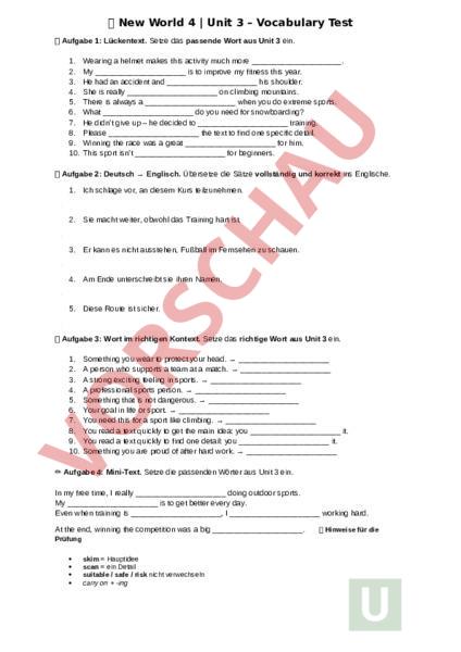 Arbeitsblatt: New World 4 Unit 3 – Vocabulary Test