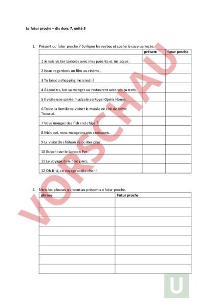 Arbeitsblatt: Dis donc 7 unité 3 futur proche