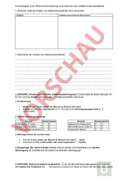 Arbeitsblatt: Grundlagen zum Thema Entstehung und Verlauf von Infektionskrankheiten
