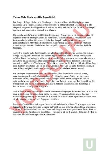 Lineare erörterung Mehr Taschengeld für Jugentliche?