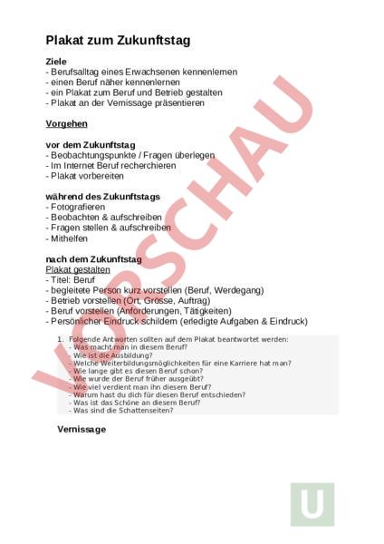 Arbeitsblatt: Plakat Zukunftstag Vorgehen