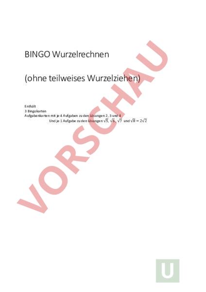 Arbeitsblatt: Bingo Wurzeln