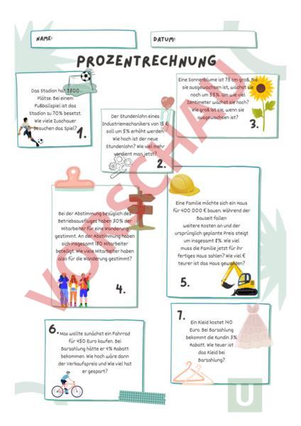 Arbeitsblatt: Textaufgaben Prozentwert