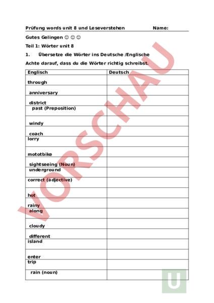 Prüfung words unit 8 und Leseverstehen Gutes Gelingen