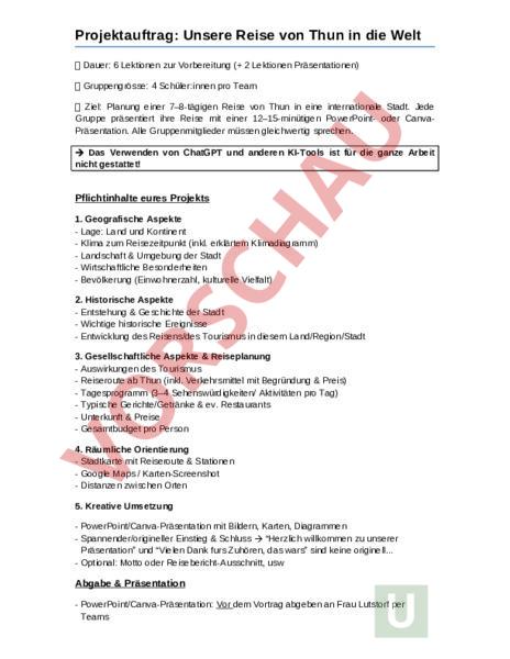 Projektauftrag: Unsere Reise von Thun in die Welt