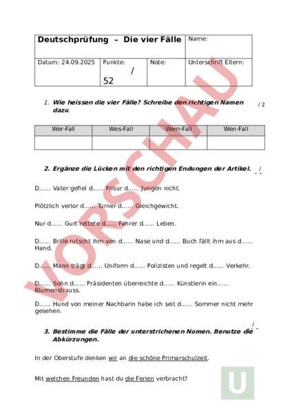 Arbeitsblatt: Deutschprüfung 4 Fälle